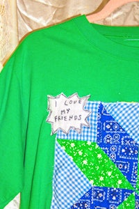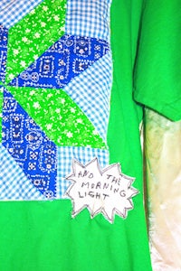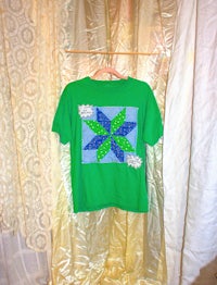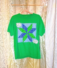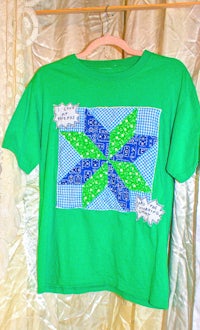 Green Quilt Tee, size S, 18” shoulder, 26” length